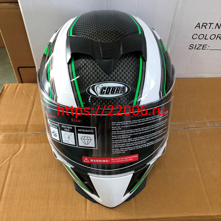 - Шлем интеграл COBRA JK311, белый с черным и зеленым(9), размеры L в Пятигорске недорого