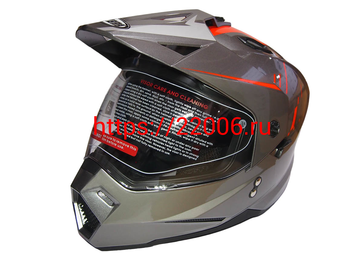 - Шлем туринг (кросс со стеклом и очками) COBRA JK802, серо-оранжевый, размеры M в Пятигорске недорого