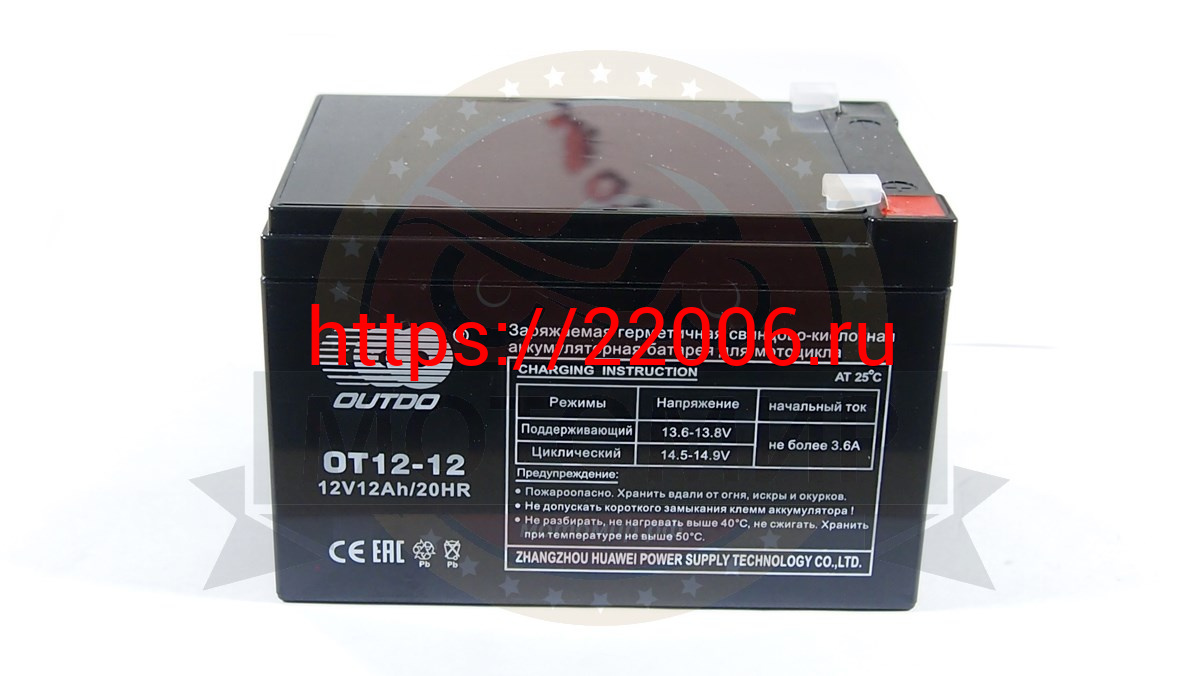 - Аккумулятор 12В 12 А/ч, кислотный AGM OТ12-12, OUTDO (151х98х96х100по_клеммам) гориз.клеммы справа в Пятигорске недорого