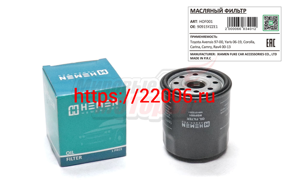- Фильтр масляный Toyota Avensis 97-00, Yaris 06-19, Corolla, Carina, Camry, Rav4 00-13 (HOF001) в Пятигорске недорого